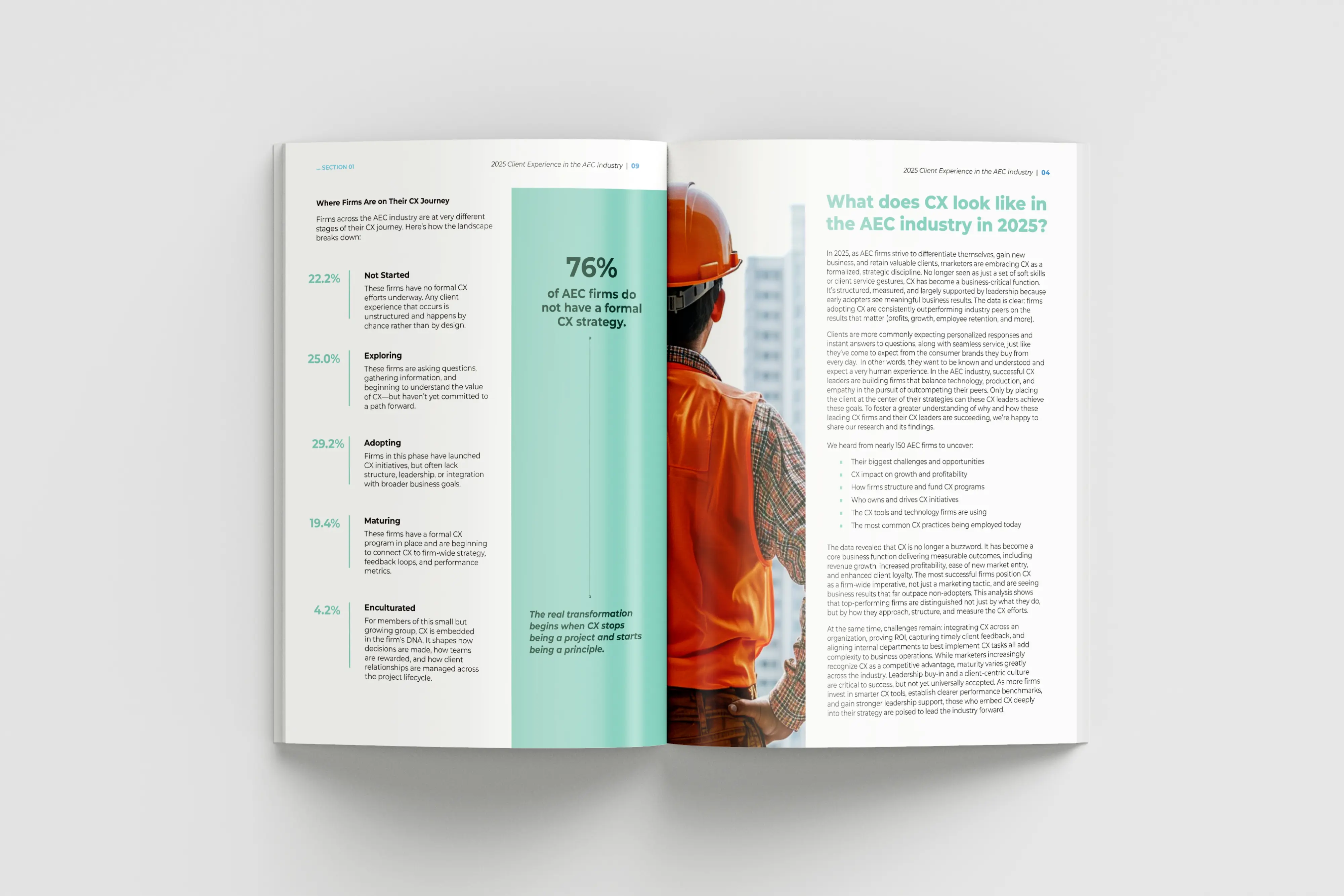 Commissioned by the Society for Marketers of Professional Services (SMPS) Foundation; this first-of-its-kind research report explores how AEC firms are structuring, funding, and operationalizing CX initiatives—and more importantly, what the most successful firms are doing differently to achieve measurable results.
